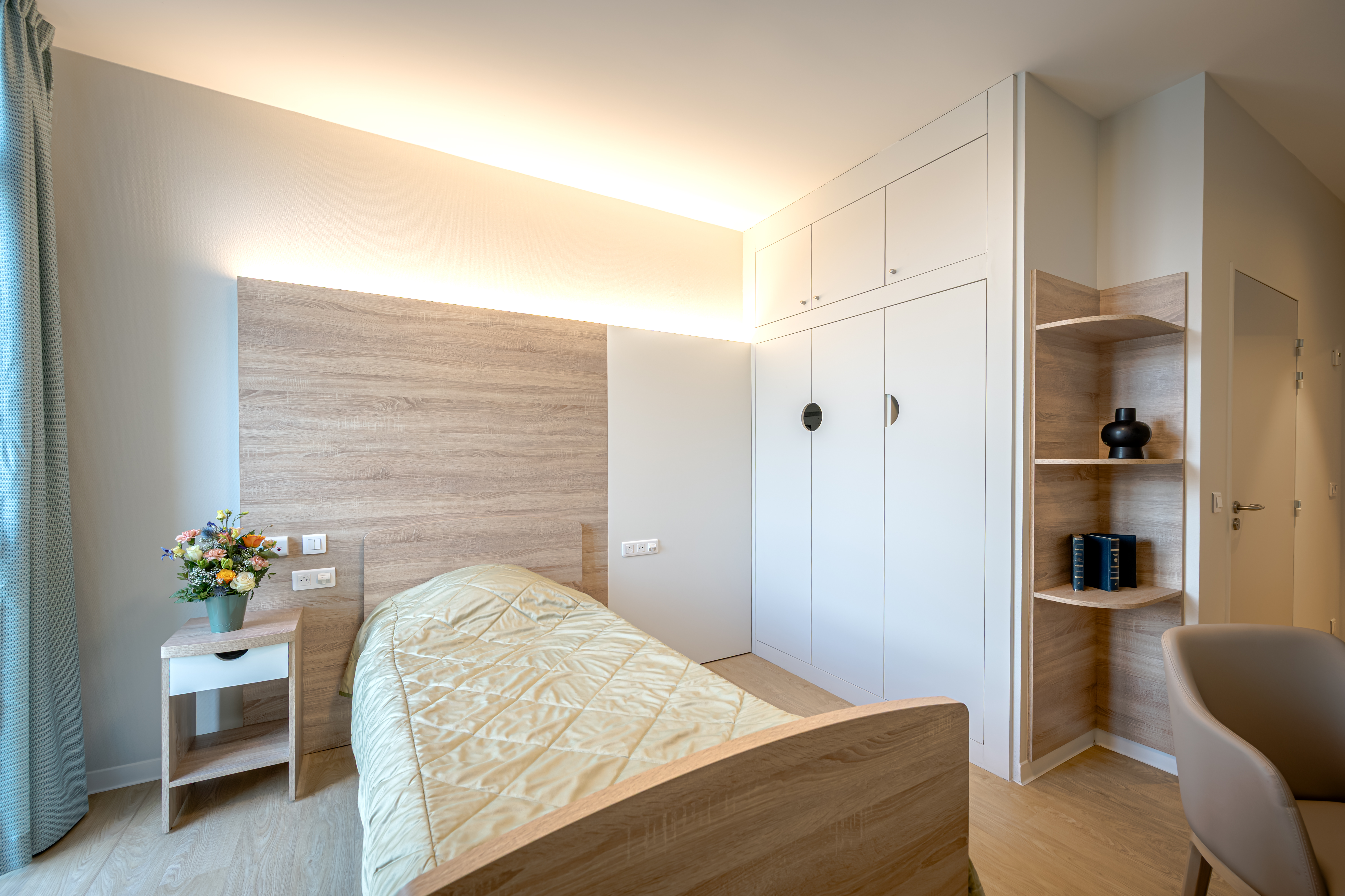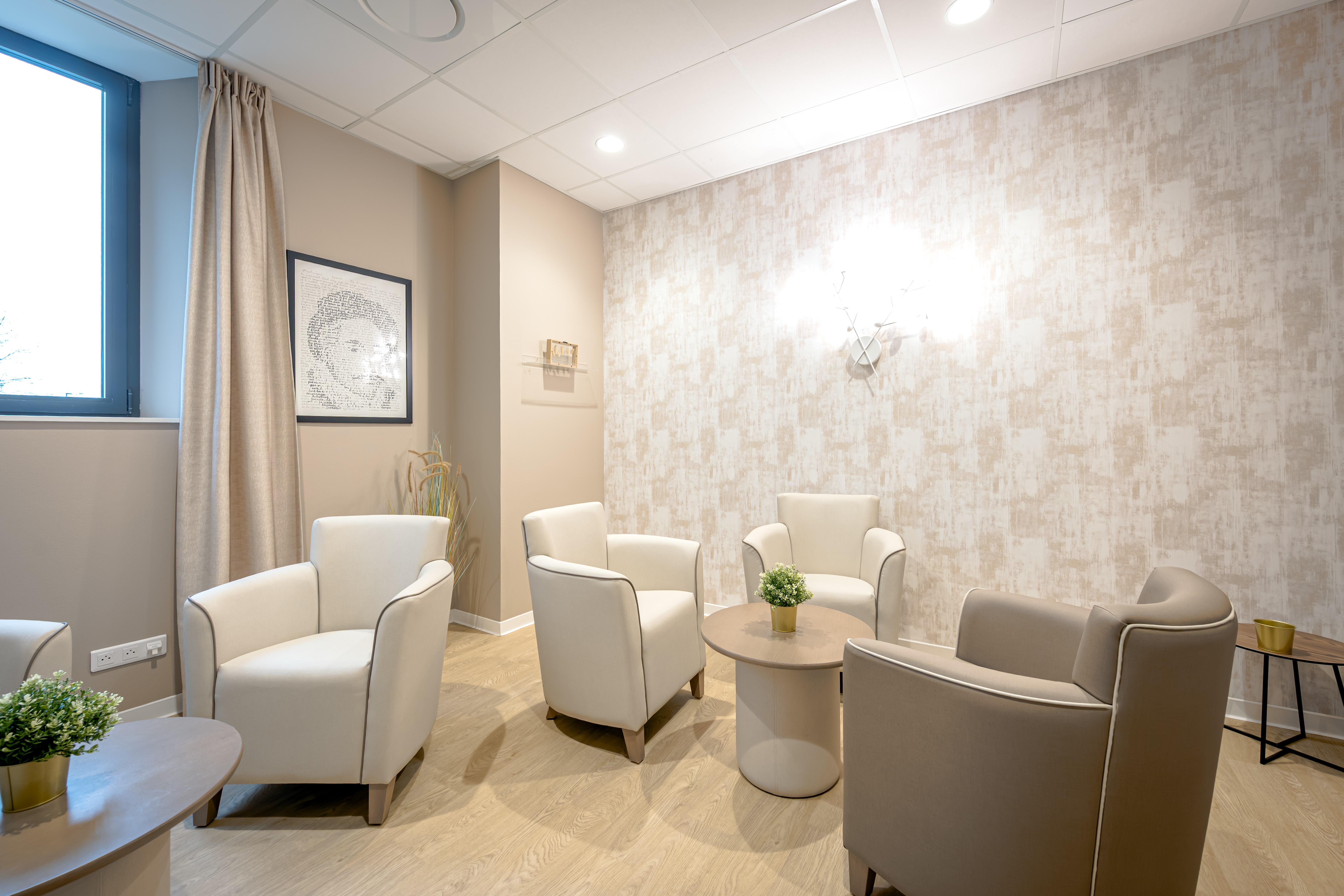 Chaque chambre a été pensée pour offrir confort, intimité et sécurité à nos résidents. Pour mieux repondre à leurs besoins et attentes, nous proposons différentes solutions d'accueil. Nos lieux de vie intérieurs et extérieurs, sont quant à eux diversifés et permettent d'offrir un cadre et des services divers à nos résidents : salon, salon de coiffure et esthétique, espace lecture, espace télévision, 2 salles de restauration, espaces pour recevoir les proches, jardin arboré, terrasses, ...